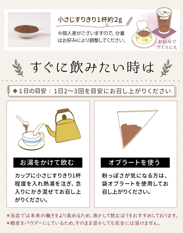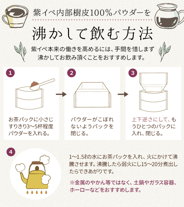 | 原材料名 | 紫イペ(内部樹皮) |